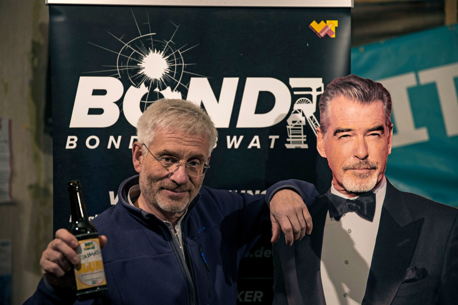 Kreiert hat die goldenen Bierspezialitäten Braumeister Gerhard Ruhmann aus Bochum-Hordel. Ende 2019 ist das Bond-Bier in Wattenscheid entstanden und wurde zum runden Geburtstag noch einmal im größeren Stil aufgelegt.