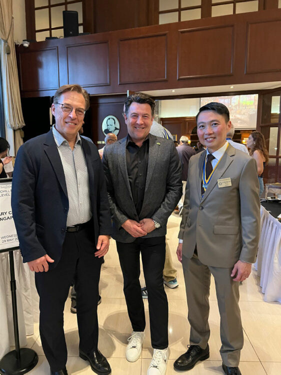 Rotary ist einer der weltweit größten Charity-Clubs, dessen Gründung vor die Zeit des Ersten Weltkrieges zurückreicht und 1,4 Millionen Mitglieder in 46.000 Clubs zählt. Dieses Jahr veranstaltete Rotary in Singapur seine jährliche World Convention. Der Essener Bundesverdienstkreuzträger Tim Geldmacher, selbst u. a. bei Rotary aktiv, stellte den Kontakt zum Rotarier Dr. Claus Rettig her, der das Geschäft des Essener Evonik-Konzerns als Präsident für das Asia Pacific Geschäft verantwortet und Mitglied des erweiterten Vorstandes von Evonik Industries weltweit ist. Wunderbar, dass es zu einem Treffen auf einer der vielen Veranstaltungen im Laufe des fünftägigen Convents kommen kann. Mit meinem Geschäftspartner und Freund Jan-Philip Ziebold (Inhaber Trivari-Group/Essen) und Andreas Bahr (Bahr Immobilien/Peine) machten wir uns auf den Weg nach Singapur.