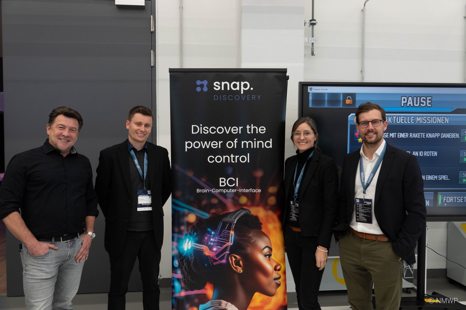 snap Discovery aus Bochum arbeitet an einem Brain-Computer-Interface, das die Gaming-Industrie revolutionieren und in Zukunft weitere Bereiche des täglichen Lebens vereinfachen wird. Ich bin Zeuge, wie eine Probandin mit einer verkabelten Haube – nur über ihre Gedanken – Spielfiguren steuert und Aktionen durchführt. Unfassbar, es funktioniert! Dr.-Ing. Corinna Weber fasst für mich zusammen: „Dieses innovative System verbindet fortschrittliche Neurotechnologie mit künstlicher Intelligenz, um eine direkte Schnittstelle zwischen dem Menschen und der Maschine zu schaffen.“ Keine Science-Fiction, sondern hier und jetzt Realität. Dabei betont sie, dass die Nutzbarkeit der künstlichen Intelligenz die Entwicklung beschleunigen wird.