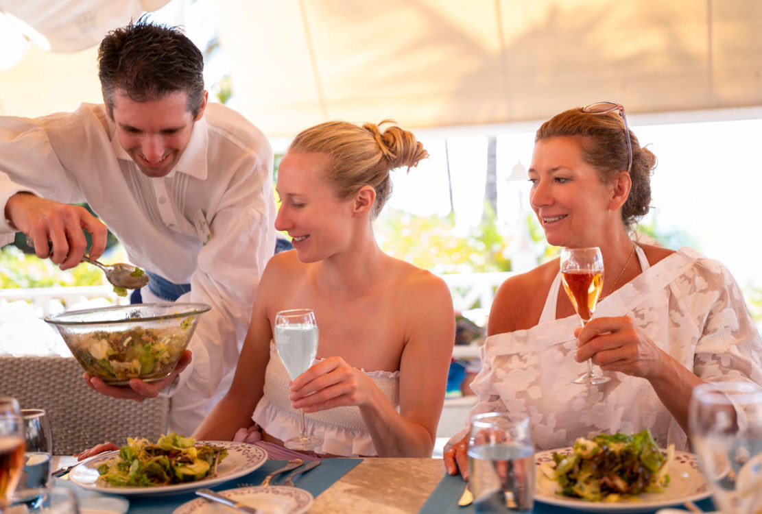 Titelbild: Sebastian und Irina freuen sich nach Sport und Wasserspielen über einen entspannten Drink.