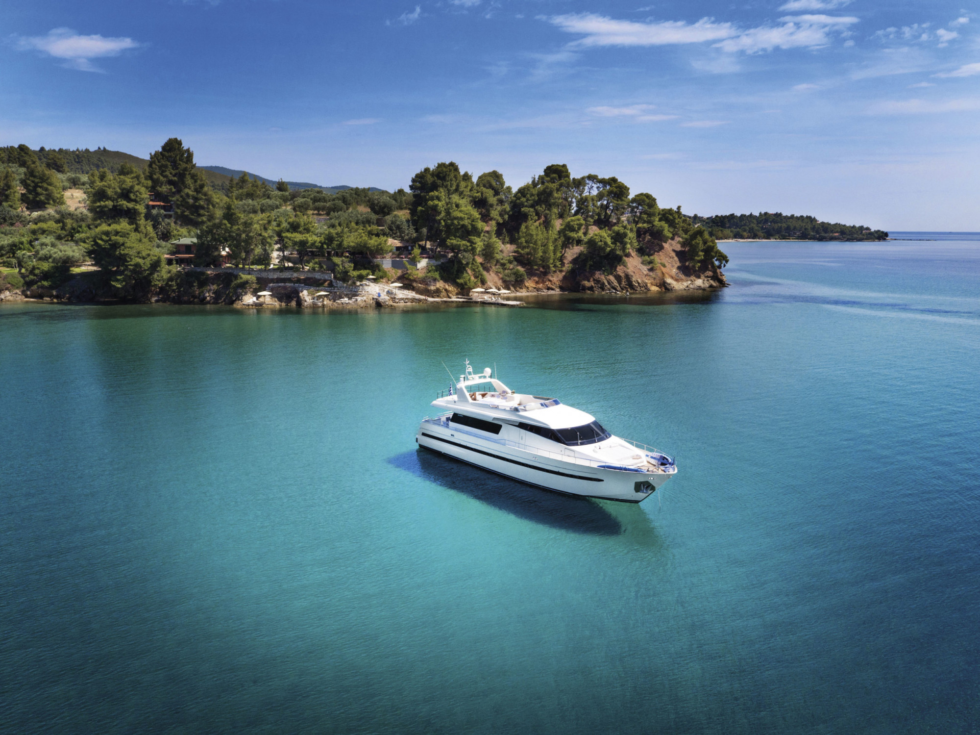 Das sind die Emotionen, die Kimon Riefenstahl meint. So organisieren der smarte Hotelchef und sein Team für einen besonderen Anlass nicht einfach nur ein Candlelight Dinner am Strand. Im „Danai Beach Resort & Villas“ fährt eine Sängerin vom Meer heran, auch das Piano, dessen Klänge den Gesang sanft begleiten, schwebt auf einem Boot über dem Wasser. Neben der sanften Musik und dem Rauschen der Wellen hört man nur das leise Rascheln der Pinienbäume über der einsamen Bucht – mehr Romantik geht nicht.