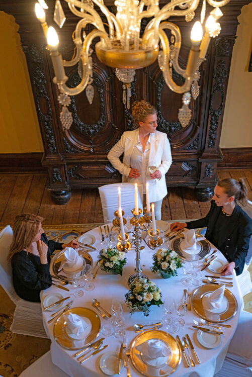 Für ihre Gäste ein Zuhause auf Zeit schaffen, das ist Vivian-J. Schiller wichtig, diese Aufgabe lebt und liebt die Direktorin im Schloss Hugenpoet täglich. Diese Philosophie teilt auch das gesamte Team. Vor allen Dingen Frauen haben hier die Führungspositionen inne: „Direktorin, Direktionsassistentin, Hausdame, Empfangsleiterin, Einkäuferin, Sommeliere & Restaurantleiterin, Personalerin, Buchhalterin“, erzählt Vivian-J. Schiller mit ein wenig Stolz. Dazu zwei Männer: der Küchenchef Dominik Schab und der Serviceleiter Daniel Bleckwedel.