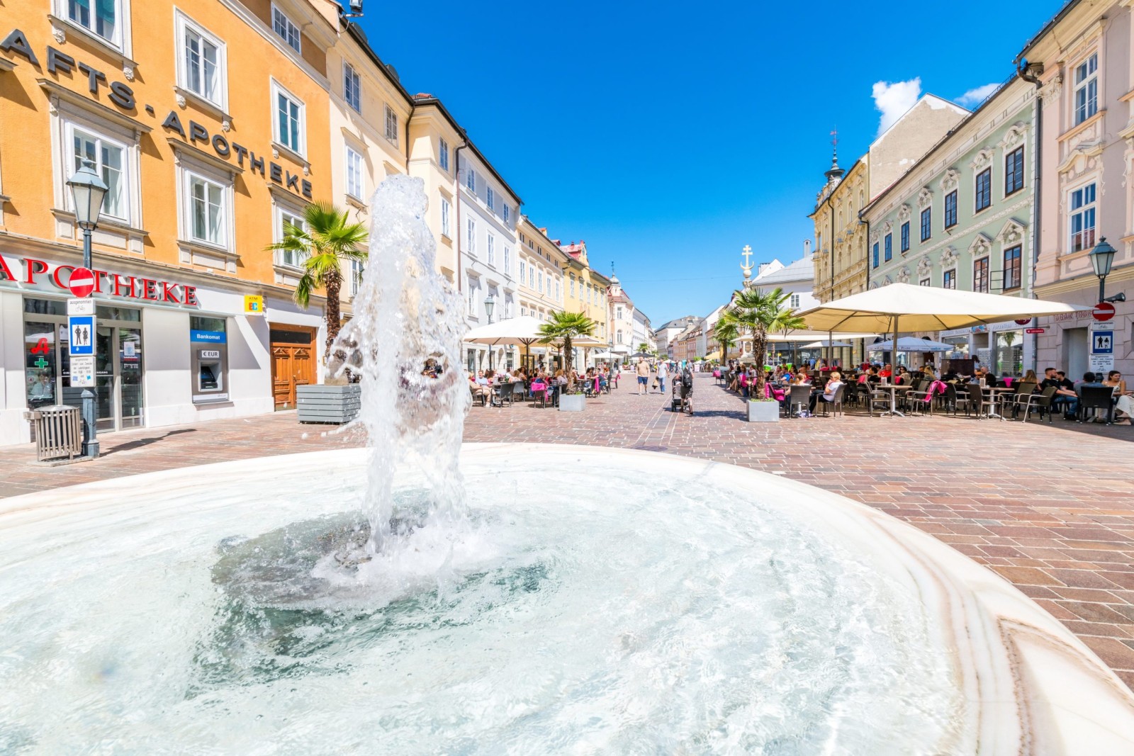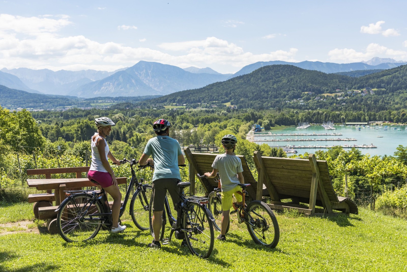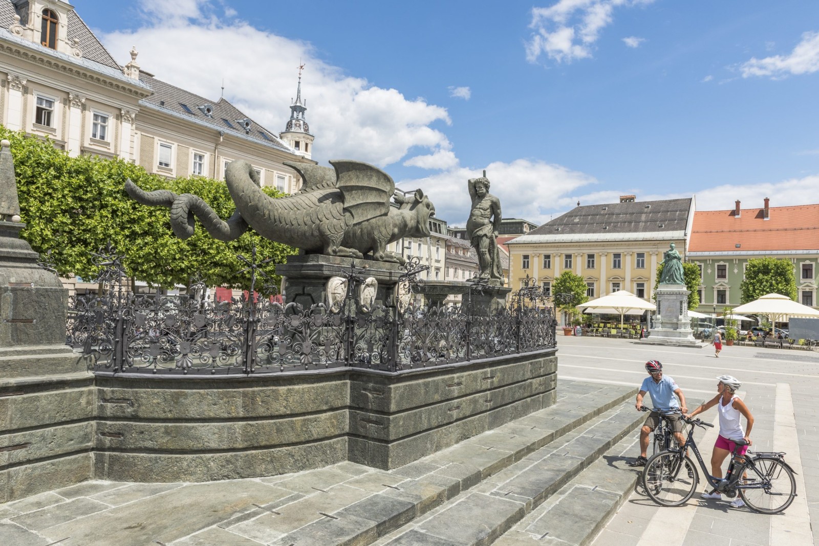Direkt vom Herzen der Innenstadt – dem Neuen Platz vorm Rathaus, wo auch das Wahrzeichen der Stadt, der große Lindwurm-Brunnen, steht – führen überregionale Radwege in alle Himmels-richtungen. Der Wörthersee Radweg startet hier und lädt zu einer Tour entlang des Nordufers über Pörtschach bis Velden, mit gemütlichen Zwischenstopps am See, wo man sich bei freiem Seezugang da und dort auch abkühlen kann. Retour geht’s mit dem Schiff.