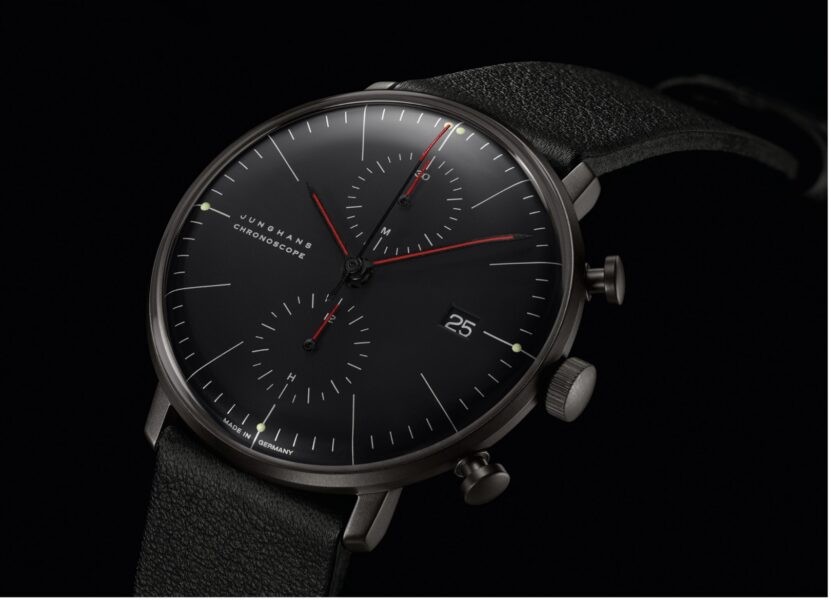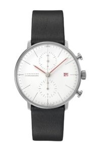 max bill Chronoscope Bauhaus in Schwarz (UVP: 2.495 Euro) oder mit weißem Zifferblatt (UVP: 2.395 Euro)