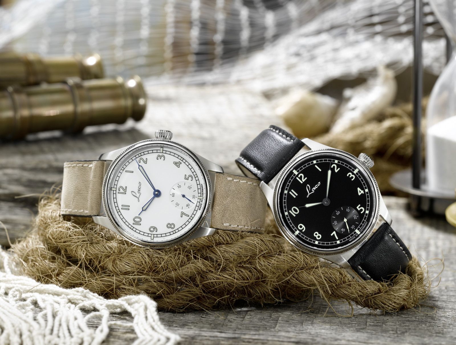 In den Marineuhren Cuxhaven und Bremerhaven kombiniert Laco Funktion und Design zweier Seefahrt-Klassiker des Hauses: einer Taschenuhr aus den 1940er-Jahren und eines Modells, das Besatzungsuhren des U-Bootes »U1« ähnelt.