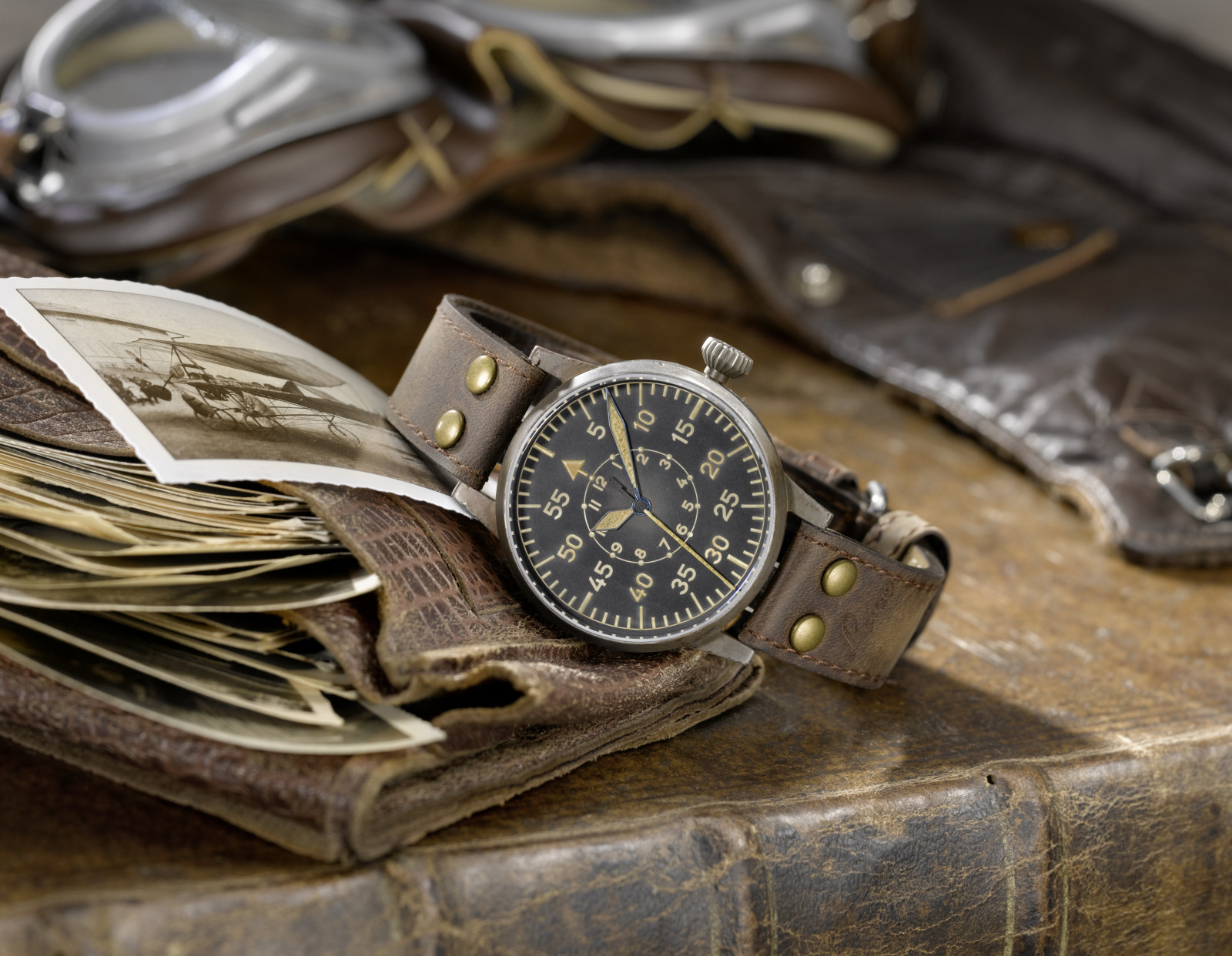Hauptmerkmale einer Laco Fliegeruhr sind dabei unter anderem das ikonische Ziffernblatt, die prägnante Zwiebelkrone, das geschlossene Lederarmband und die Oberflächenveredelung des Gehäuses.