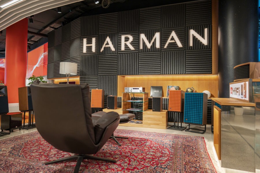 Tim Lellinger: Im JBL STORE vereinen wir die Produkt- und Markenvielfalt von HARMAN unter einem Dach. Zum einen aus dem Lifestyle-Audio-Bereich: Kopfhörer, portable Bluetooth-Lautsprecher, Partyboxen, Soundbars und Gaming-Headsets mit den Marken JBL und Harman Kardon. Der Automotive-Bereich wird durch luxuriöse Special Edition Cars vertreten, bei denen die Harman Soundtechnologie integriert ist. Auch für HiFi-Enthusiasten bieten wir mit den Premiummarken JBL, Mark Levinson, Revel und Arcam ein breites Portfolio an High-End-Produkten. Mit der neuesten HARMAN-Marke InfinityLab haben wir auch noch nachhaltiges Zubehör und Ladegeräte vor Ort. Da ist sicher für jeden was dabei!